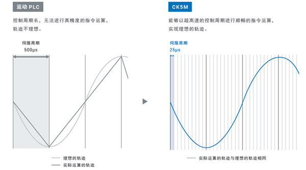 通過控制周期25μs/5軸*1這種超高速伺服周期運(yùn)算,實(shí)現(xiàn)高精度的指令運(yùn)算和高精度的指令追蹤,使客戶的設(shè)備達(dá)到更高精度。