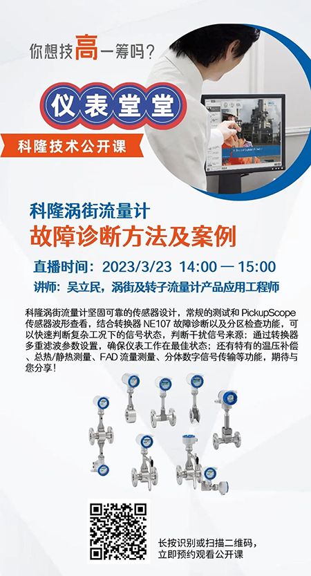 3月23日(本周四)下午2:00《科隆渦街流量計(jì)故障診斷方法及案例》,科隆儀表工程師吳立民與您相約科隆直播間!