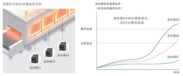 以往,難以根據(jù)加熱器的個(gè)體差異或溫度影響確定更換時(shí)機(jī),導(dǎo)致加熱器在更換前因?yàn)閿嗑€而意外停機(jī),或者過多考慮偏差而在到達(dá)使用壽命前廢棄加熱器,因此在確定維護(hù)時(shí)機(jī)時(shí),需要同時(shí)考慮突發(fā)停止的風(fēng)險(xiǎn)以及成本。而K7TM可通過監(jiān)控設(shè)備的加熱器狀態(tài),掌握各個(gè)加熱器的老化趨勢(shì),能夠從快速老化的加熱器開始實(shí)施更換。由此,可在提高裝置運(yùn)轉(zhuǎn)效率的同時(shí)降低維護(hù)成本,從而提高加熱器的維護(hù)品質(zhì)。