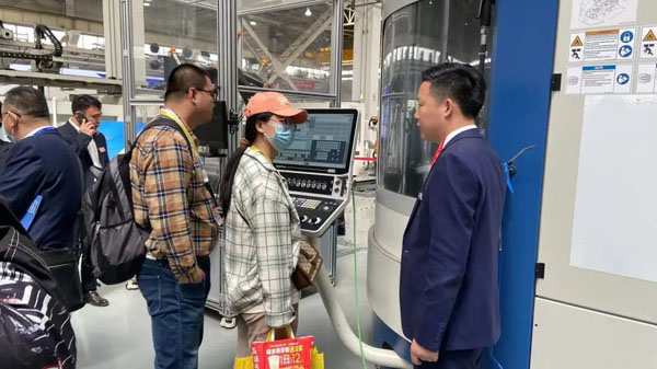 CIMT 2023的另外一臺(tái)展機(jī)——格勞博G系列五軸聯(lián)動(dòng)通用加工中心G350配備了Heidenhain TNC 640控制系統(tǒng)和16,000 rpm的HSK-A63強(qiáng)力電主軸(159/206 Nm)。臥式的主軸結(jié)構(gòu)具備強(qiáng)大的銑削性能。