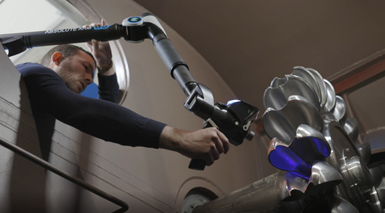 為更好地完成對(duì)佩爾頓水輪機(jī)的改造,首先需要對(duì)現(xiàn)有工件進(jìn)行精確的3D數(shù)據(jù)掃描,以供后續(xù)處理分析。佩爾頓水輪機(jī)的重量通常高達(dá)800kg,送到檢測室測量極其不便。為此??怂箍堤峁┝薘A8絕對(duì)臂藍(lán)光掃描檢測方案,可以在不拆工件、不停機(jī)的情況下,在現(xiàn)場快速準(zhǔn)確地完成3D數(shù)據(jù)采集。