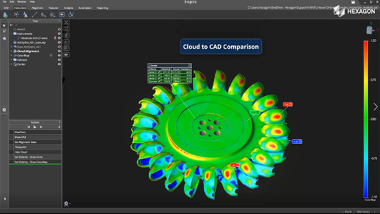 為了驗(yàn)證水輪機(jī)表面加工是否設(shè)計(jì)要求,判斷新工件水斗的外形輪廓是否與CAD模型相符,用戶還可以使用絕對(duì)臂測量機(jī)對(duì)新工件進(jìn)行整體掃描,并采用全新一代的便攜式檢測軟件Inspire對(duì)測量結(jié)果進(jìn)行專業(yè)分析。