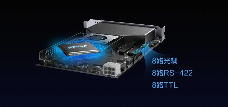 配套采集卡采用FPGA方案,從根源解決丟包問題,釋放相機(jī)端FPGA和PC端CPU的部分資源。同時,配備了24路I/O接口,可與外部IO靈活接入,也能夠進(jìn)行卡間信號擴(kuò)展,實(shí)現(xiàn)同步。