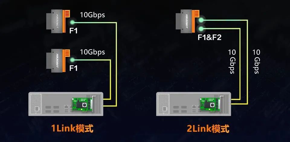 相機(jī)與采集卡均支持1Link和2Link傳輸兩種工作模式,其中,采集卡還可支持無序連接,安裝便捷。