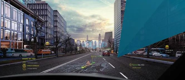圖1:通過擋風(fēng)玻璃投射在路上的虛擬圖像