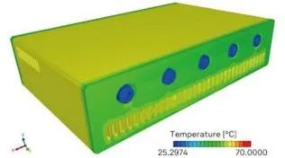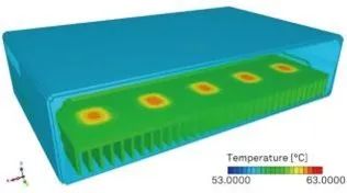 此外,這些計算實驗允許進行設(shè)計敏感性分析,以了解哪些幾何參數(shù)或材料屬性對計算結(jié)果和設(shè)計目標(biāo)有最大的影響。圖6顯示了WayRay公司為一家日本汽車制造商開發(fā)的全息導(dǎo)航系統(tǒng)的激光塊的熱設(shè)計計算結(jié)果。
