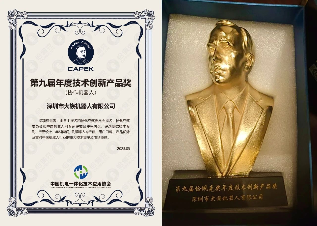 出席本屆恰佩克頒獎(jiǎng)盛宴,并榮獲年度技術(shù)創(chuàng)新產(chǎn)品獎(jiǎng)(Elfin Ex系列防爆型協(xié)作機(jī)器人),是對(duì)大族機(jī)器人持續(xù)深耕智能協(xié)作機(jī)器人領(lǐng)域的肯定和褒獎(jiǎng)。Elfin Ex系列已獲得國(guó)家防爆認(rèn)證、達(dá)到IP66防護(hù)等級(jí),能夠在存在易燃易爆、可燃性粉塵及液體飛濺明顯的危險(xiǎn)生產(chǎn)環(huán)境中正常作業(yè),進(jìn)一步擴(kuò)大了協(xié)作機(jī)器人的應(yīng)用范圍和領(lǐng)域,也做到了用機(jī)器人技術(shù)為為人民服務(wù)。