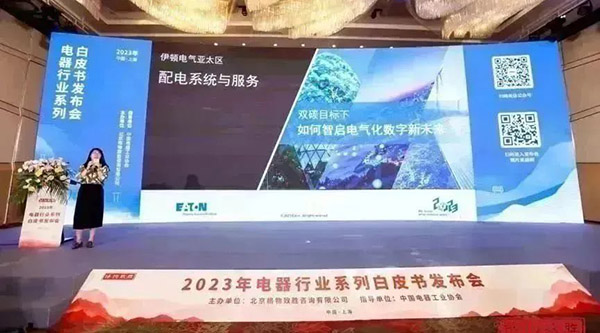 6月9日,由中國電器工業(yè)協(xié)會指導(dǎo),格物致勝主辦的《2023 年中國電器行業(yè)系列白皮書》發(fā)布會在上海隆重舉行,此次發(fā)布會匯聚全球多家電器行業(yè)知名企業(yè)、業(yè)界大咖等多位重量級客戶,共同探討在“雙碳”背景下未來業(yè)態(tài)發(fā)展與格局轉(zhuǎn)變。伊頓電氣受邀出席本次發(fā)布會,并斬獲 4 大榮譽獎項。同時,伊頓電氣配電系統(tǒng)與服務(wù)事業(yè)部亞太區(qū)數(shù)字化方案架構(gòu)師劉雪,發(fā)表了《雙碳目標(biāo)下,如何智啟電氣化數(shù)字新未來》的主題演講。