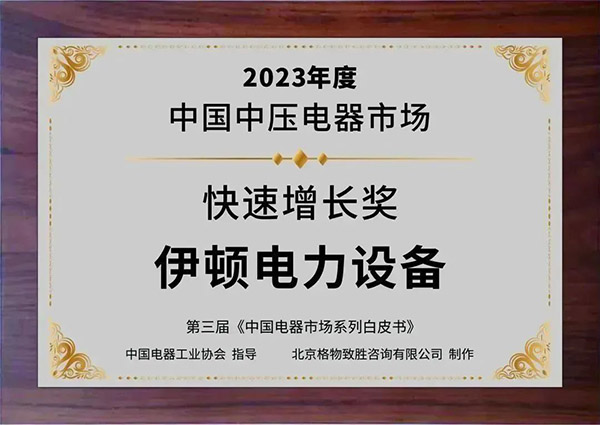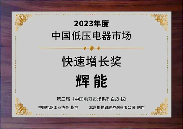 2022 年并購成立的伊頓輝能低壓電器(江蘇)有限公司,榮獲“2023 年度中國低壓電器市場·快速增長獎”。