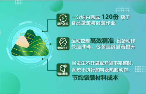 而實現(xiàn)對粽子自動裝袋、封袋以及真空處理的包裝設備——給袋式包裝機的運行效率,就成為保證粽子質(zhì)量的關(guān)鍵!