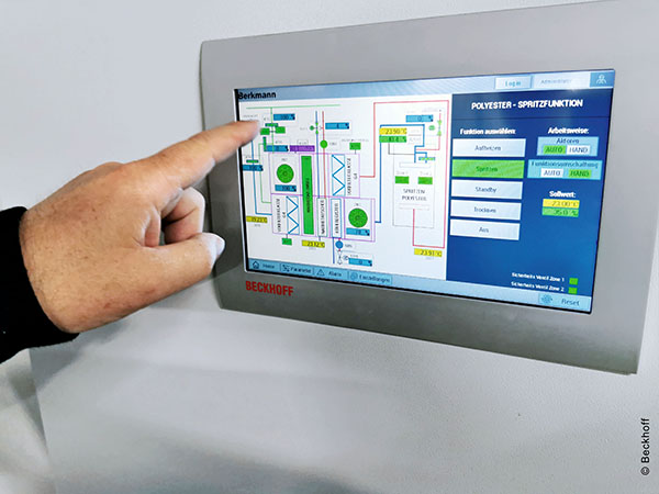 車間內(nèi)安裝的倍福 CP690x 控制面板可以使用基于 HTML5 的 TwinCAT 人機(jī)界面實(shí)現(xiàn)噴漆車間可視化和控制