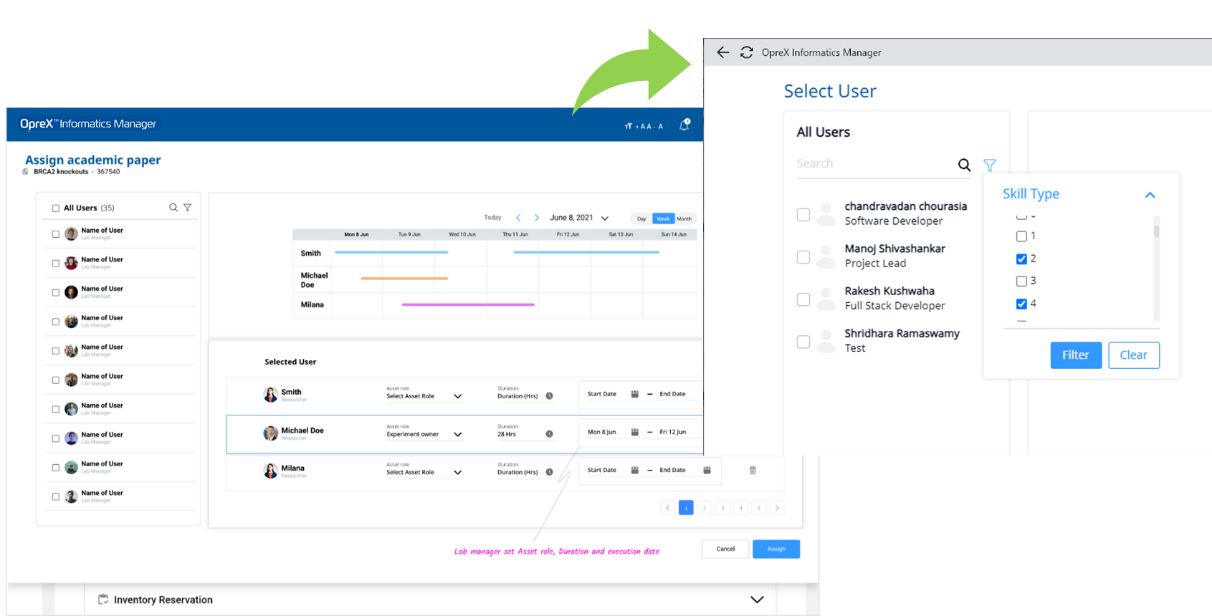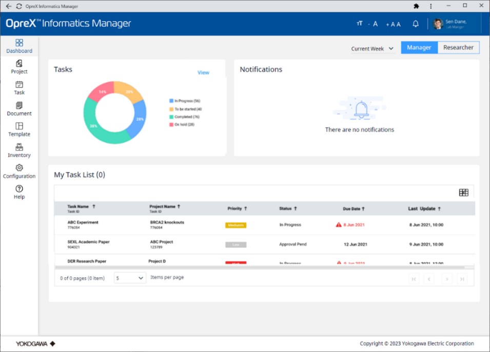 項(xiàng)目和任務(wù)管理功能控制著各種任務(wù)的執(zhí)行,包括實(shí)驗(yàn)、標(biāo)準(zhǔn)程序和文檔。執(zhí)行這些任務(wù)時(shí),管理員會(huì)根據(jù)所需的技能和人員可用性向該軟件的用戶發(fā)出工作請(qǐng)求。執(zhí)行任務(wù)時(shí),該軟件通過(guò)關(guān)聯(lián)所需設(shè)備、試劑和檢查對(duì)象的信息,支持資源的優(yōu)化分配。管理員可以從控制面板輕松管理用戶任務(wù)的進(jìn)度。為了便于審查,可以在系統(tǒng)、項(xiàng)目和任務(wù)級(jí)別創(chuàng)建有關(guān)執(zhí)行任務(wù)的人員以及時(shí)間的列表。