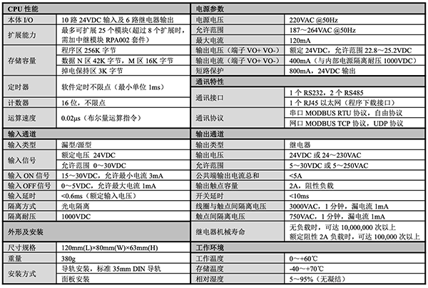 從參數(shù)表中,我們可以看到RPC2117N供電方式為AC220V,同時(shí)支持對(duì)外輸出DC24V電源;可以看到在程序存儲(chǔ)這里給出256K,這個(gè)容量對(duì)于小型PLC系統(tǒng)來說,可以說是巨無霸的容量了,其他市場小型PLC的程序存儲(chǔ)僅僅在16K/64K。這是因?yàn)樗麄儾恍枰幚磔^多復(fù)雜的多回路PID等高級(jí)算法,以及第三方通訊等需求。這也就意味著你可以多個(gè)PID回路、SFC順控、ST數(shù)值計(jì)算、LD邏輯控制多管齊下。另外計(jì)數(shù)器、時(shí)間塊等緊俏資源,在工控“安卓”系統(tǒng)Codesys runtime加持下,做到了“盡力而為”不作限制。