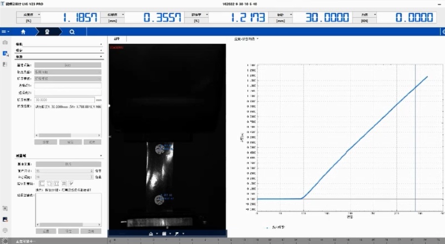 通過基于堡盟相機(jī)以及實(shí)時(shí)圖像的處理算法,拍攝測量過程中的實(shí)驗(yàn)圖像,分析圖像特征變化,可實(shí)現(xiàn)動態(tài)實(shí)時(shí)收集應(yīng)變、位移等數(shù)據(jù),并且與試驗(yàn)機(jī)信號實(shí)現(xiàn)互通,可以測量應(yīng)力應(yīng)變曲線等各種力學(xué)性能參數(shù),適用于各類力學(xué)測試,實(shí)時(shí)輸出有價(jià)值結(jié)果。