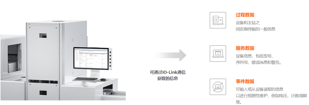 IO-Link通信傳感器不僅可以監(jiān)視ON/OFF信號(hào),還可以監(jiān)視傳感器使用時(shí)間、斷開連接和通信狀態(tài)等診斷數(shù)據(jù)。