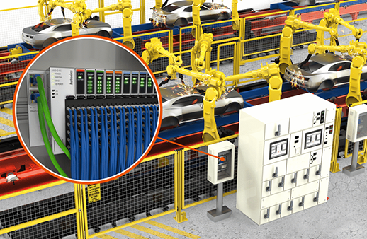 遠程I/O應(yīng)用于汽車制造過程,設(shè)置工業(yè)以太網(wǎng)/現(xiàn)場總線通信I/O,實現(xiàn)多個機器人設(shè)備的實時控制。