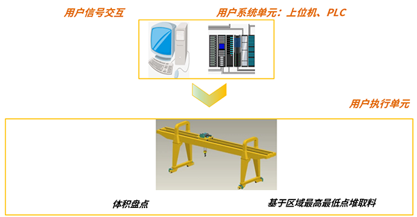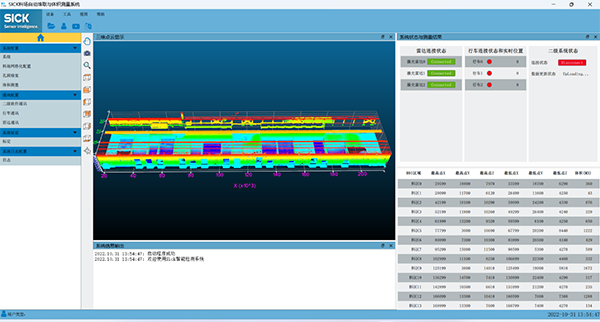 本系統(tǒng)是基于SICK二維激光雷達開發(fā)的一款料場三維掃描系統(tǒng),通過實時獲取二維激光雷達所在天車的位置與雷達當前掃描出來的2D輪廓進行匹配,進而對料場進行3D建模,系統(tǒng)實時維護并更新料場的3D堆型地圖,通過計算設定的各目標區(qū)域內的料堆的最高點、最低點、以及體積數(shù)據(jù),將測量結果數(shù)據(jù)發(fā)送到客戶二級系統(tǒng),以便實現(xiàn)自動堆取料工藝。
