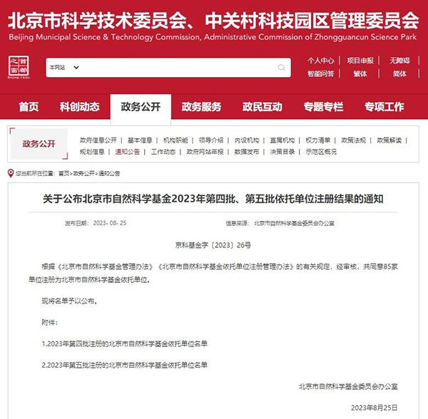 2023年8月25日,北京市自然科學基金委員會辦公室發(fā)布了《關于公布北京市自然科學基金2023年第四批、第五批依托單位注冊結果的通知》,西克麥哈克(北京)儀器有限公司順利通過相關審核,正式獲批成為北京市自然科學基金依托單位。今后公司將依據(jù)相關法規(guī)條例申請和承擔北京市自然科學基金項目,并配合基金辦對項目的實施和經費的使用進行檢查、監(jiān)督。