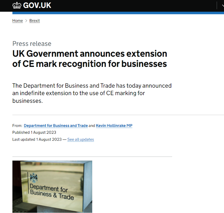 2023年8月,英國宣布無限期延長企業(yè)使用“CE”標(biāo)志的期限,旨在減輕企業(yè)負(fù)擔(dān)并幫助經(jīng)濟(jì)增長。該政策對于有產(chǎn)品想要出口英國的企業(yè)來說,絕對是重磅利好,只需要CE認(rèn)證就可以通行,不再需要另外辦理UKCA認(rèn)證。