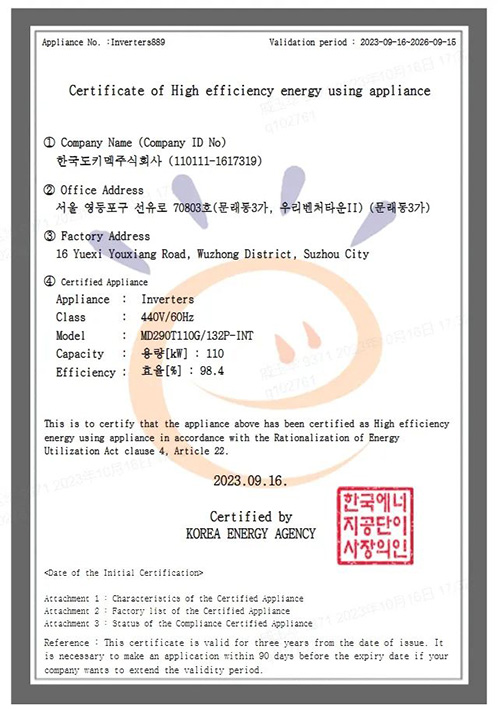 Emark認(rèn)證是一種高效能源認(rèn)證,只要符合政府宣布的能源效率和質(zhì)量測試檢驗結(jié)果的特定標(biāo)準(zhǔn)以上的用能設(shè)備產(chǎn)品,就可以獲得Emark認(rèn)證。2023年,韓國電力將提供高效變頻器補助金185.45億韓元(約合14MUSD)。在政府利好政策的推動下,終端在選用變頻器產(chǎn)品時,優(yōu)先選用帶有Emark認(rèn)證標(biāo)志的產(chǎn)品。這也意味著,在未來的市場競爭中,只有具備Emark認(rèn)證標(biāo)志的產(chǎn)品才能獲得更多客戶的信任和支持,贏得更多市場份額。