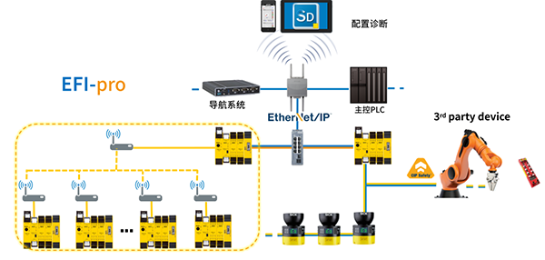 SICK安全產(chǎn)品/系統(tǒng)作為出口AGV/AMR的主流選項,恰好有符合安全無線標準的產(chǎn)品和系統(tǒng):SICK EFI pro安全系統(tǒng),此套系統(tǒng)產(chǎn)品和協(xié)議都已預(yù)認證,可以幫助客戶節(jié)省大量的時間和資源。