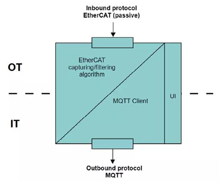 基于赫優(yōu)訊的netX多協(xié)議處理器(如計算機通訊卡或嵌入式模塊中使用的處理器),帶有集成工業(yè)網(wǎng)絡接口的容器主機系統(tǒng)(如現(xiàn)場部署級邊緣網(wǎng)關)可用于采集EtherCAT網(wǎng)絡過程數(shù)據(jù)。此外,通過使用赫優(yōu)訊被動式以太網(wǎng)分路器netMIRROR,可以使在線監(jiān)控在容器主機斷電的情況下不影響EtherCAT網(wǎng)絡。