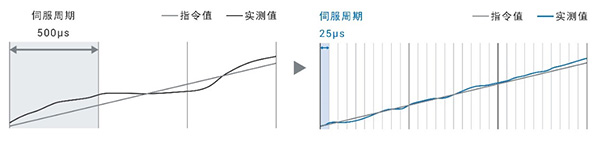 只要存在高精度的指令,即可通過追蹤指令,實(shí)現(xiàn)高精度的運(yùn)動(dòng)控制。通過高速接收并補(bǔ)償反饋值,實(shí)現(xiàn)更接近指令值的軌跡控制。