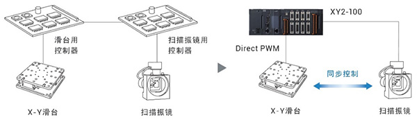 輸入接口支持A/B相信號(hào)、正弦波信號(hào)、串行數(shù)據(jù)I/F,而控制指令接口也支持模擬指令(DAC)、基于Direct PWM*2的軸控制。該系統(tǒng)可連接高精度的標(biāo)尺、精密的直線電機(jī)、高精度的掃描振鏡等,能自由選擇適合客戶應(yīng)用的設(shè)備構(gòu)成。還能通過各執(zhí)行器之間的高精度同步控制實(shí)現(xiàn)高精度的加工。