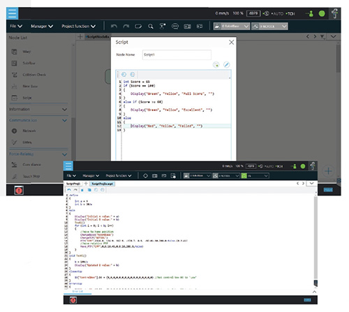 S系列協(xié)作機(jī)器人可使用Project和Mode兩種腳本編程方法。Script語(yǔ)言允許高級(jí)用戶(hù)對(duì)機(jī)器人項(xiàng)目進(jìn)行更簡(jiǎn)潔、更有條理的編程。