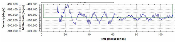 ● 工作臺(tái)旋轉(zhuǎn)的速度波動(dòng)極低,速度波動(dòng)<±0.02%(遠(yuǎn)低于預(yù)設(shè)的±0.1%),有效的確保了MEMS傳感芯片測(cè)試的精度和穩(wěn)定性