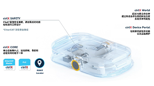 控制平臺ctrlX CORE可將過去分布于PC、PLC和安全控件上的全部任務加以組合,從而減少開發(fā)人員所用組件數(shù)量,縮小必需的安裝空間。同時,由于功能集成和現(xiàn)代通信接口的采用,所需布線量有所下降。自動化套件ctrlX AUTOMATION完全基于開放式標準,如EtherCAT、OPC UA、MQTT或VDA 5050。ctrlX Data Layer可確保在流程與安全功能之間進行快速無誤的數(shù)據(jù)交換。所有安全信息交換均通過FSoE連接來實現(xiàn)。因此,制造商可以在工作量最小的前提下獲得對應于PLd等級性能的功能安全性。博世力士樂的ctrlX SAFETY為此提供了必要的接口和模塊。除標準功能外還可執(zhí)行安全算術運算。