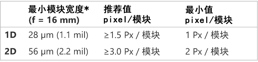 它可識別的最小一維碼模塊寬度為28 μm, 最小二維碼模塊寬度為56 μm。