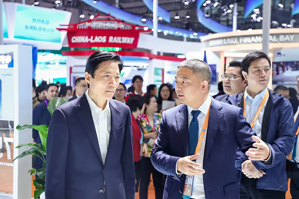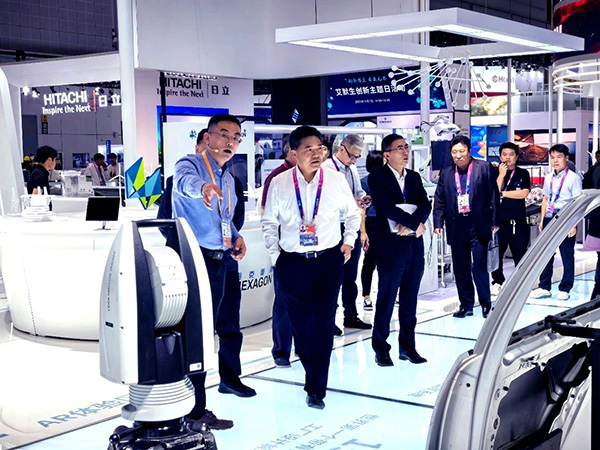 陜西省渭南市委常委、市政府副市長馬中威參觀海克斯康展臺(tái)。