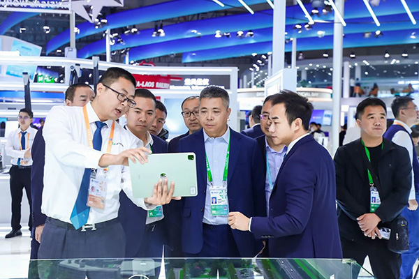 進(jìn)博會(huì)期間,在??怂箍嫡古_(tái),來自政府、企事業(yè)單位和合作伙伴的高層領(lǐng)導(dǎo)嘉賓前來參觀指導(dǎo),共話智能制造,共探高質(zhì)量發(fā)展。