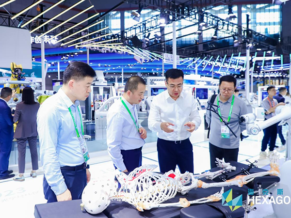 山西省晉城市高平市委常委、市政府黨組副書記、副市長鄭威劍參觀海克斯康展臺(tái)。