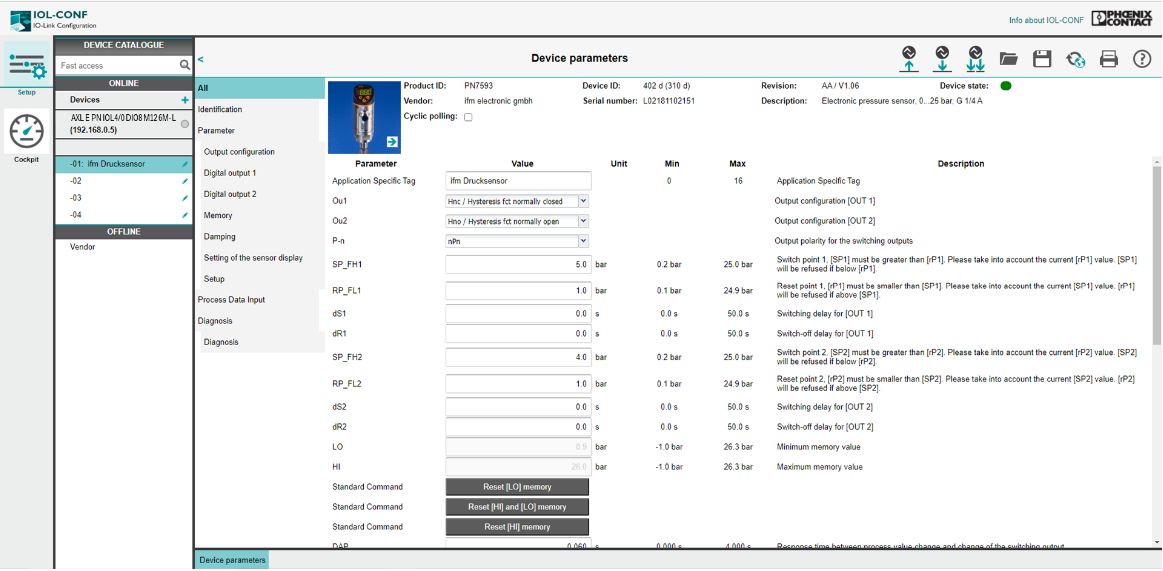 使用單獨的IOL-CONF軟件對連接的IO-Link設備進行參數(shù)設置;