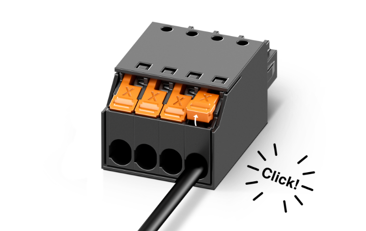 接線成功后,有清晰反饋觸發(fā)彈簧機構(gòu)的Click聲,與此同時橙色操作按鈕彈起,聽覺視覺雙重感官確保接線可靠。
