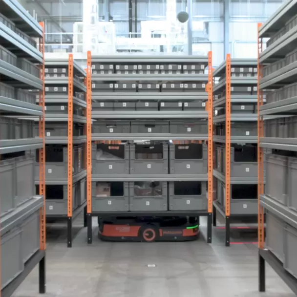 Farsound定制了多種貨架來(lái)滿足不同種類零部件的搬運(yùn)需求;同時(shí),??禉C(jī)器人LMR可實(shí)現(xiàn)貨架的柔性適配。