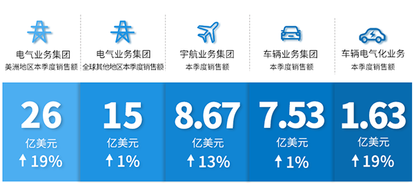 電氣業(yè)務(wù)集團(tuán)美洲地區(qū)銷售額創(chuàng)歷史新高,達(dá)到26 億美元,同比增長(zhǎng)19%,全部來自有機(jī)銷售額增長(zhǎng)。營運(yùn)利潤(rùn)達(dá)創(chuàng)紀(jì)錄的7.19億美元,同比增長(zhǎng)41%。季度營運(yùn)利潤(rùn)率達(dá)創(chuàng)紀(jì)錄的27.7%,同比增長(zhǎng)420個(gè)基點(diǎn)。