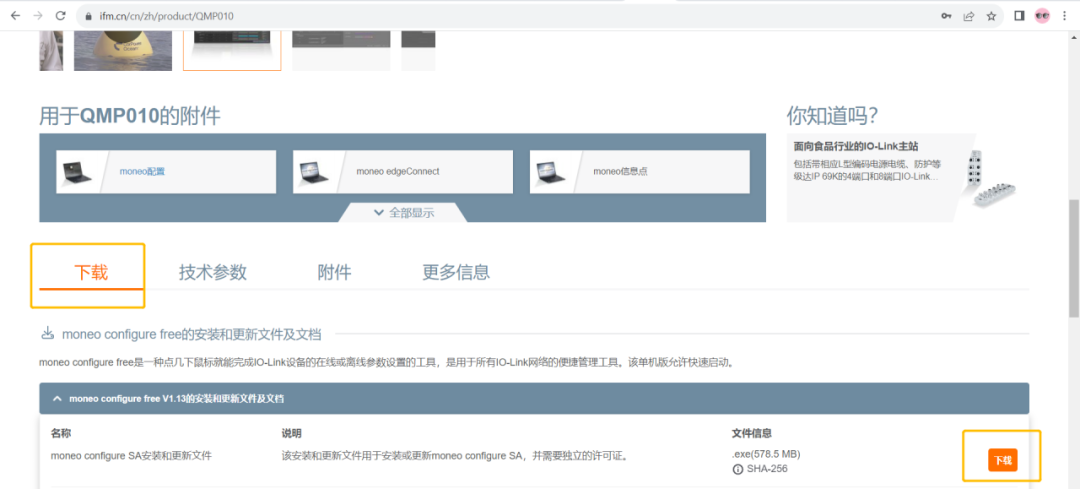 官網(wǎng)搜索QMP010,點(diǎn)擊下載,并運(yùn)行安裝包(該步驟需在官網(wǎng)注冊并登錄您的ifm賬戶)