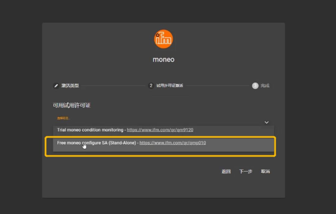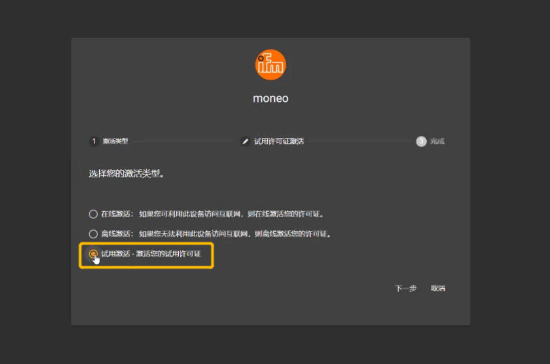 進(jìn)入激活頁面后選擇試用激活,點(diǎn)擊下一步后選擇Free moneo configure SA,再次點(diǎn)擊下一步等待激活。