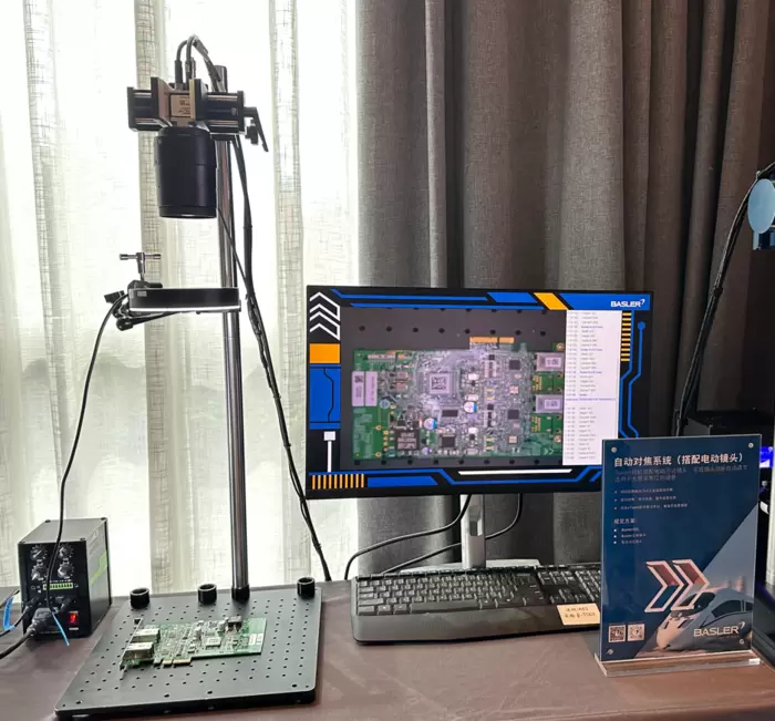 此次我們展出了兩套自動(dòng)對(duì)焦系統(tǒng),分別搭配液態(tài)鏡頭和電動(dòng)鏡頭??蛻艨筛鶕?jù)自身的實(shí)際需求來(lái)進(jìn)行選擇。Basler自動(dòng)對(duì)焦系統(tǒng)能夠?qū)崿F(xiàn)百毫秒內(nèi)自動(dòng)對(duì)焦,速度約為傳統(tǒng)對(duì)焦方式的10倍,大幅提升成像效率。