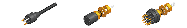 微型圓形系列的插頭和插座的針芯范圍為 2-21 芯,額定電壓為 300V,電流 5-10A。