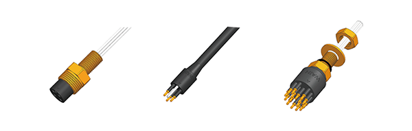 采用高等級(jí)氯丁橡膠和海軍黃銅材料制成,大多數(shù)插頭后面接的是防水的SOOW 柔性電纜,插座后接有特氟龍外皮的多股尾線,鎖緊蓋使用聚甲醛樹酯澆鑄而成,配合不銹鋼的彈性卡環(huán)使用。標(biāo)準(zhǔn)圓形的 2 ~ 12 芯連接器還可現(xiàn)場(chǎng)硫化和安裝。