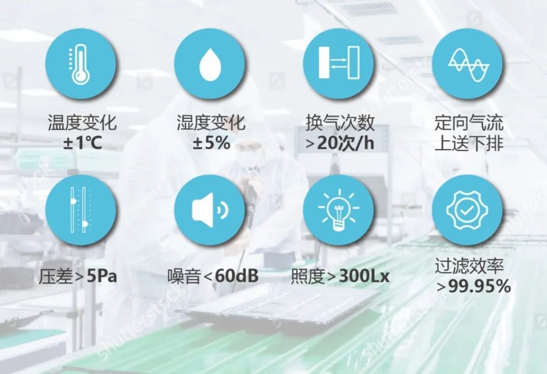 潔凈室的運(yùn)營(yíng)條件苛刻且復(fù)雜,不僅需將空氣中的微粒子、有害氣體、有機(jī)質(zhì)等污染物進(jìn)行排除,更需通過連續(xù)的控制手段將影響室內(nèi)環(huán)境的各項(xiàng)指標(biāo)維持在標(biāo)準(zhǔn)數(shù)值內(nèi)。