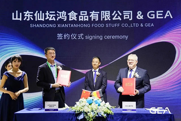 GEA借助進(jìn)博會的平臺與老友相聚,曾在2017年為山東仙壇鴻食品有限公司提供了一條全熟生產(chǎn)線的簽約。2023年雙方就雞肉食品加工解決方案再次展開深度合作,并簽訂戰(zhàn)略合作協(xié)議。GEA將借助領(lǐng)先的食品加工技術(shù)為客戶提供全生命周期解決方案,為客戶生產(chǎn)保駕護(hù)航。