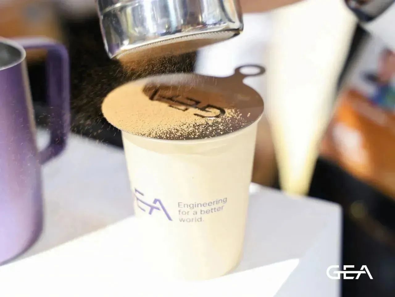 GEA展臺提供新鮮的現(xiàn)磨咖啡,靠近展臺時(shí)誘人香氣撲面而來~咖啡師們可是真正的藝術(shù)家!他們將咖啡杯變成了畫布,用高品質(zhì)牛奶繪制出一幅幅醉人的愛心拉花。用實(shí)實(shí)在在的牛奶,向大家詮釋GEA從牧場到餐桌的全價(jià)值鏈乳品解決方案。