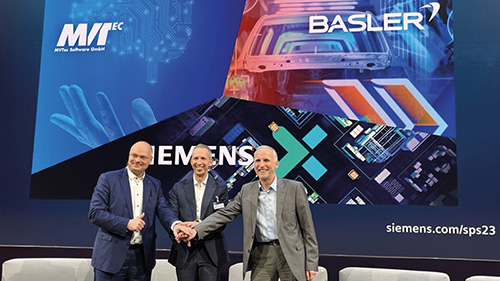 MVTec的Olaf Munkelt博士(左)、西門子的Rainer Brehm(中)和Basler的Dietmar Ley博士(右)在紐倫堡SPS展會上宣布了合作伙伴關(guān)系。