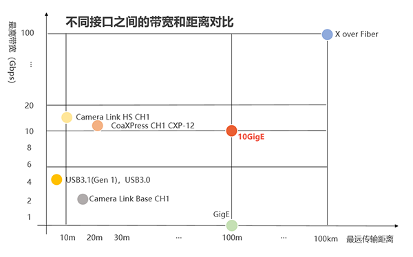相機(jī)采用10GigE萬兆網(wǎng)協(xié)議接口,向下兼容千兆網(wǎng),功耗更低,傳輸距離更長,并且萬兆網(wǎng)整體方案相較于Camera Link和CoaXPress方案,復(fù)雜度和成本都有所降低。