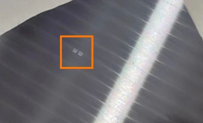 電池片隱形碼:電池片刻印二維碼,為防止刻痕損壞電池片,刻印極淺肉眼不可見(jiàn),且受柵線干擾。